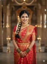 Discover the perfect blend of elegance and harmony with our Lakshmi Pendant Necklace Set. This exquisite piece features a Lakshmi pendant adorned with peacocks and floral designs, crafted with vibrant kemp and zircon stones. Dangling pearls and golden balls add a touch of sophistication, completing the ensemble with grace. Embrace the elegance of tradition with this versatile necklace set, suitable for various occasions.