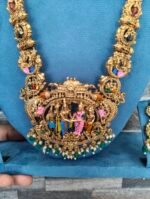 Experience the divine essence of South Indian tradition with our Srinivasa Kalyanam Statement Aaram. This masterpiece intricately depicts the sacred wedding ceremony of Lord Venkateswara, making it a soulful addition to your jewelry collection.
