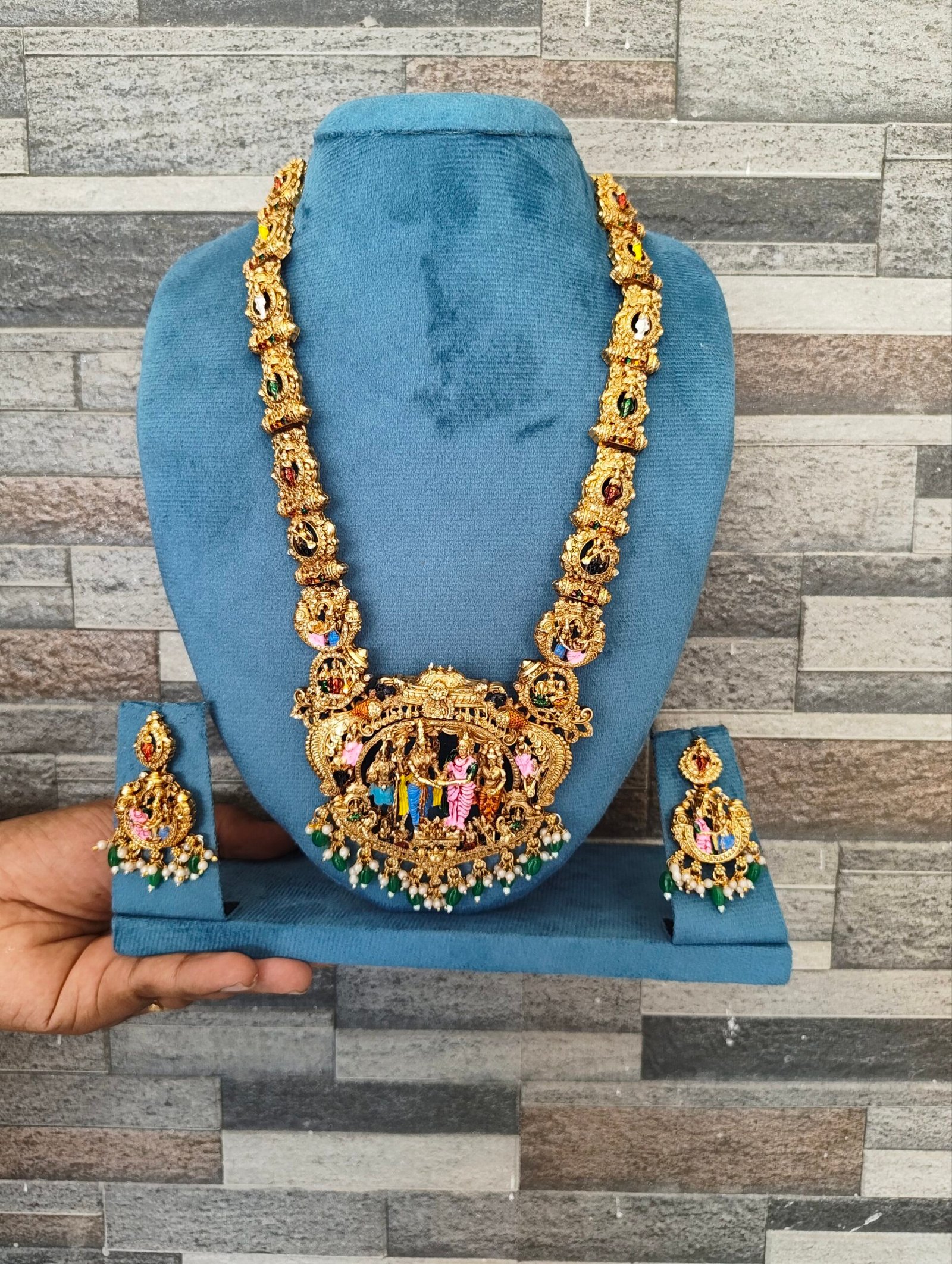 - Stone Work: Multicolored accents and emerald-green bead hangings for a vibrant touch.