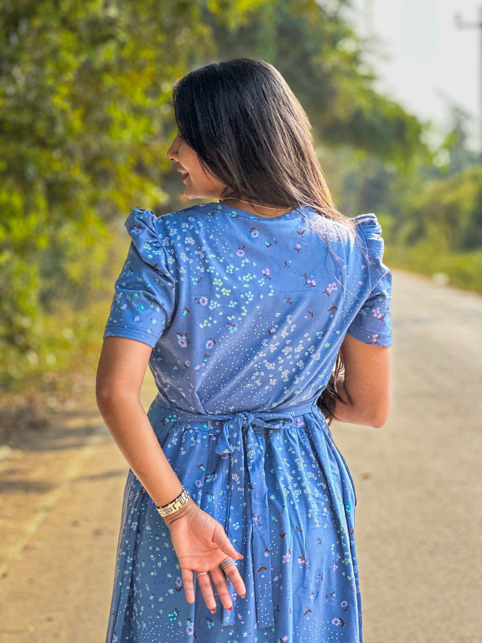 Premium Quality Blue Floral Printed Full length Maternity Loungewear